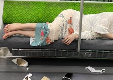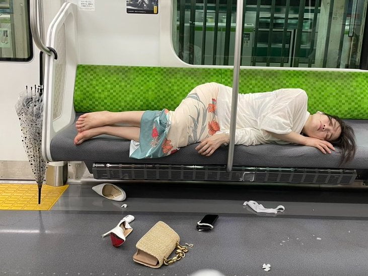【画像】美人女子さん、泥酔して電車で寝てしまう・・・